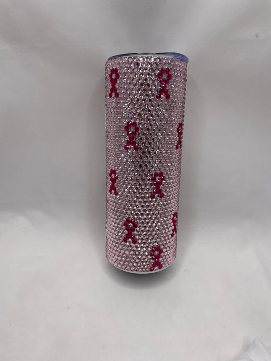 Rhinestone Breast Cancer Awareness Themed Tumbler