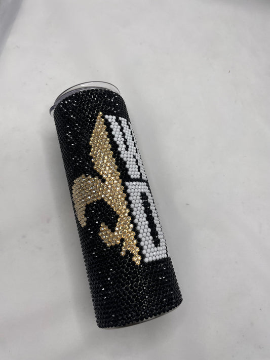 New Orleans Saints Themed Rhinestone Tumbler