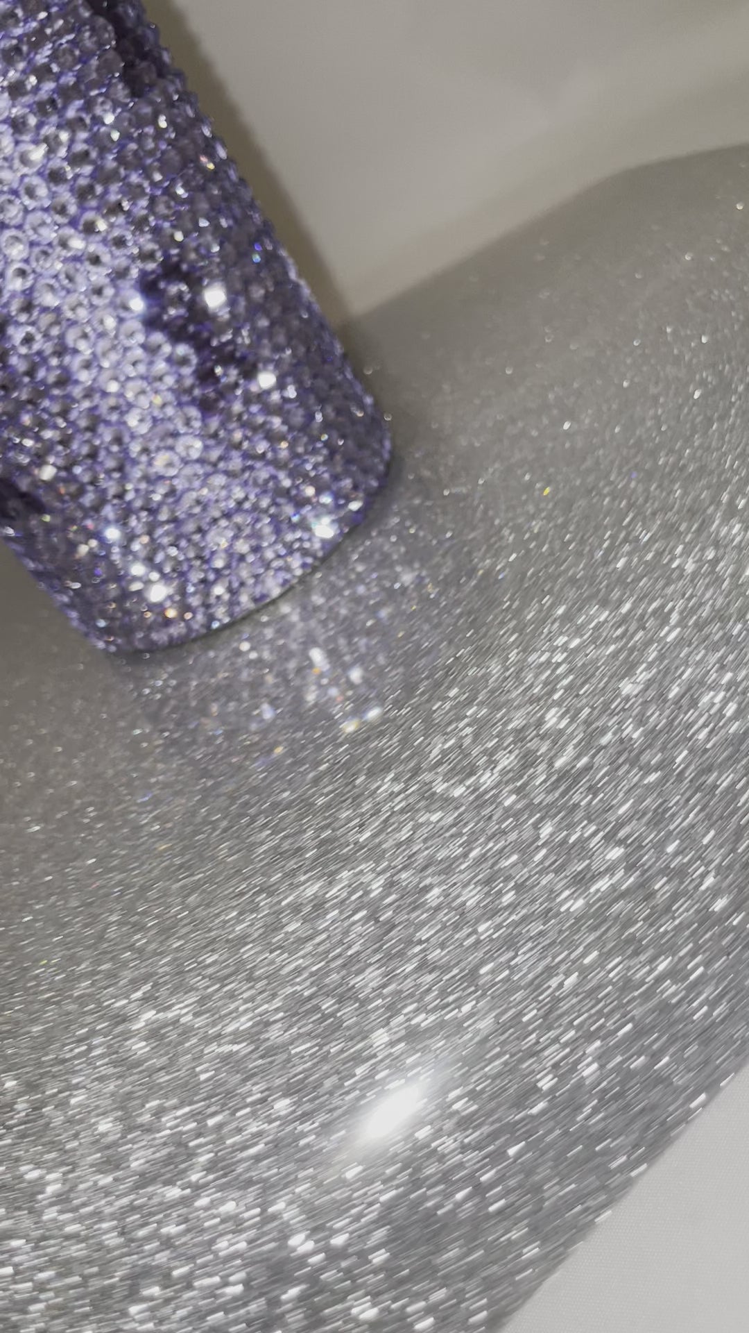 20oz stainless steel tumbler with hand placed over 2200 glass stones. Tumbler must be hand washed. Do not put in dishwasher. Tumbler comes with a stainless steel straw, lid, and straw cleaning brush. Can use tumbler for hot and cold beverages.